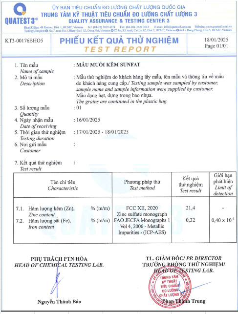 Kẽm sunphate (ZnSO4.7H20)